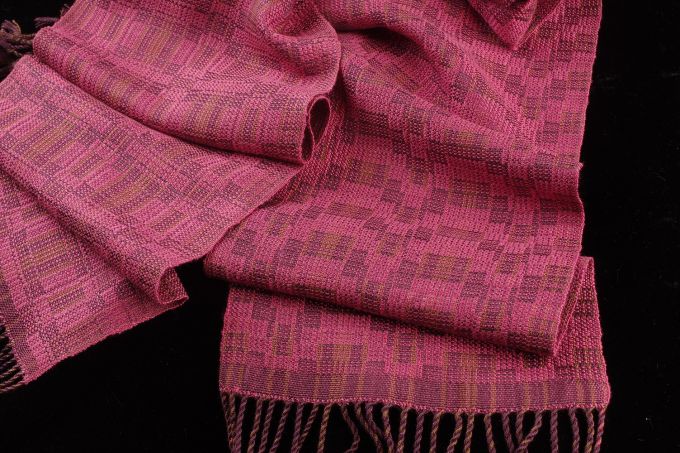 8S weaving kit makes TWO silk scarves. Designed and woven by Karen Donde.  Featured in Heddlecraft May/June 2020.