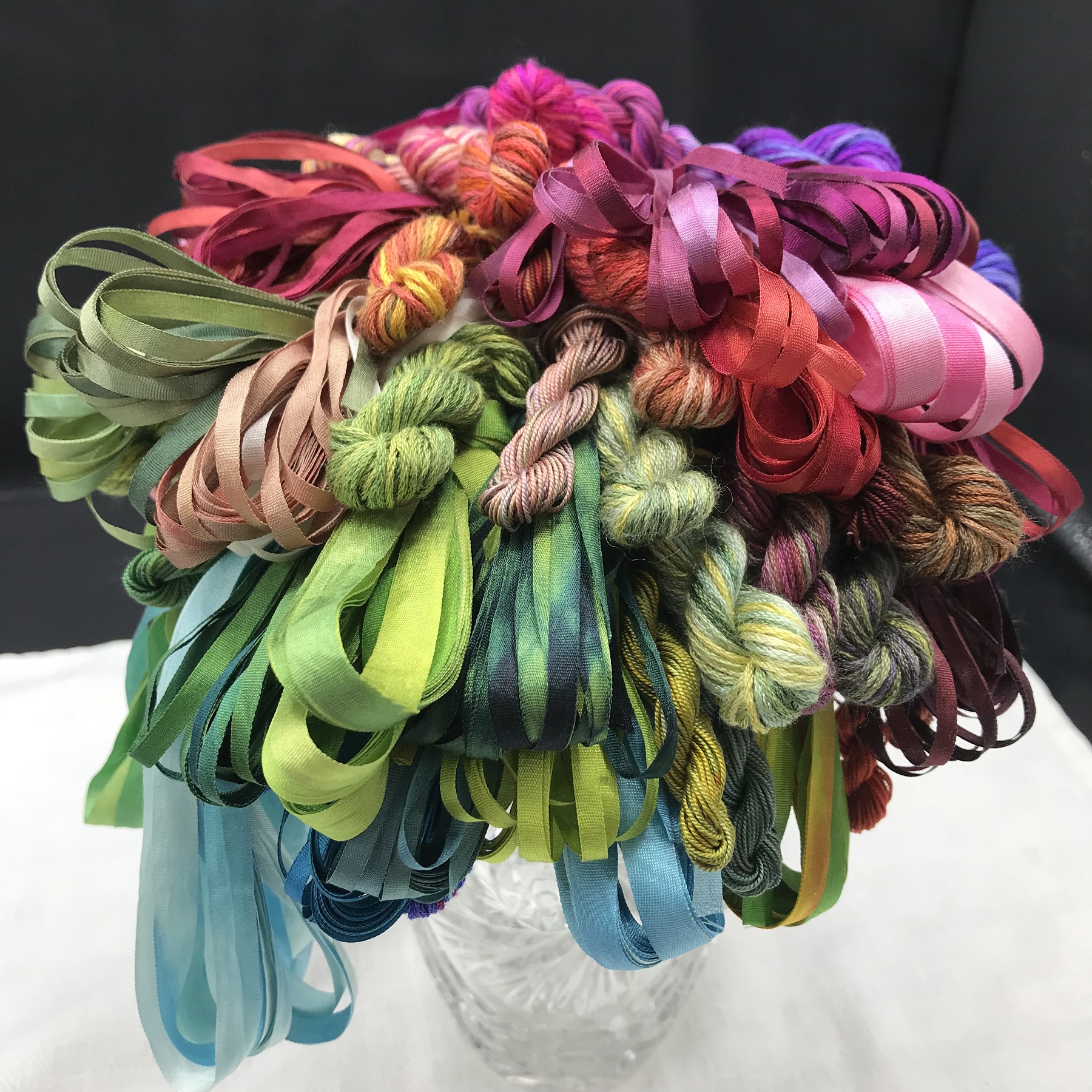 Hand-painted/overdyed colorways available in THREE widths of silk ribbon and FIVE silk threads