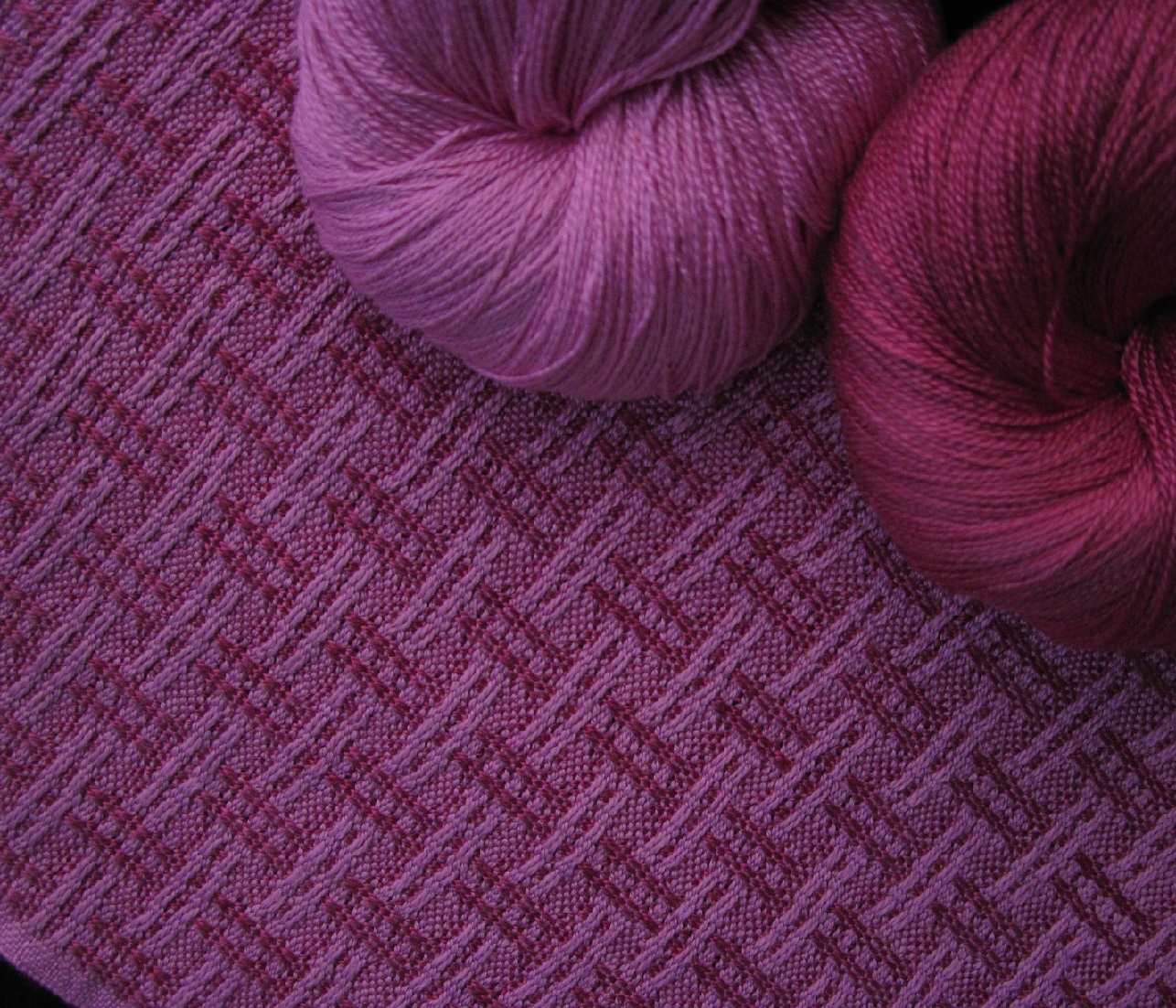 I love how just 4 shafts and a one-shuttle can create these marvelous diamonds! Robyn Spady, editor and publisher of Heddlecraft Magazine, designed and wove these--she always finds the best way convince you that 4 shafts are enough!