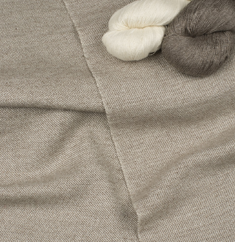 Want a little variation? You can subsitute Camelot Chameau (30/2, 55%Silk/45%Camel) for the Silken Fog to make a lovely camel color. Or you can substitute Silken Ankara (30/2, 55%Silk/45%Angora Rabbit) for the Gokana.